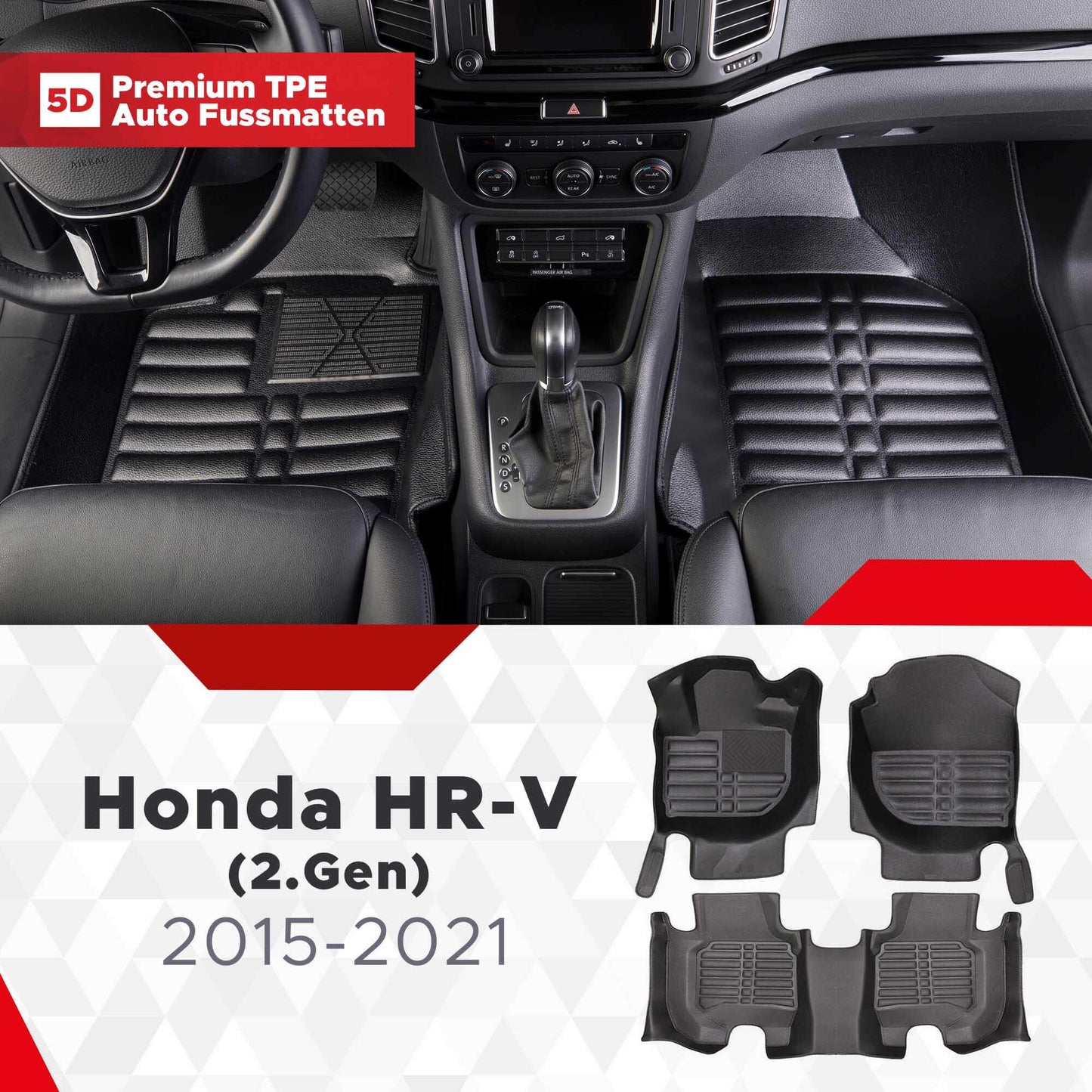 5D Premium Auto Fussmatten TPE Set passend für Honda HR-V (2.Gen) Baujahr 2015-2021