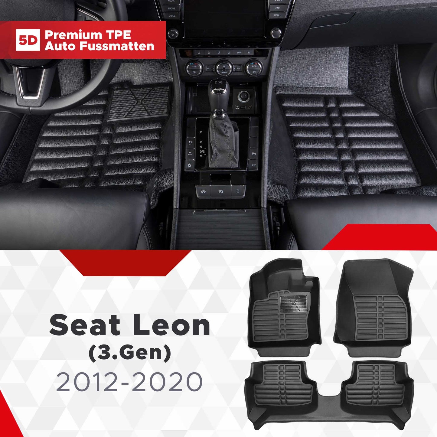 5D Premium Auto Fussmatten TPE Set passend für Seat Leon (3.Gen) Baujahr 2012-2020