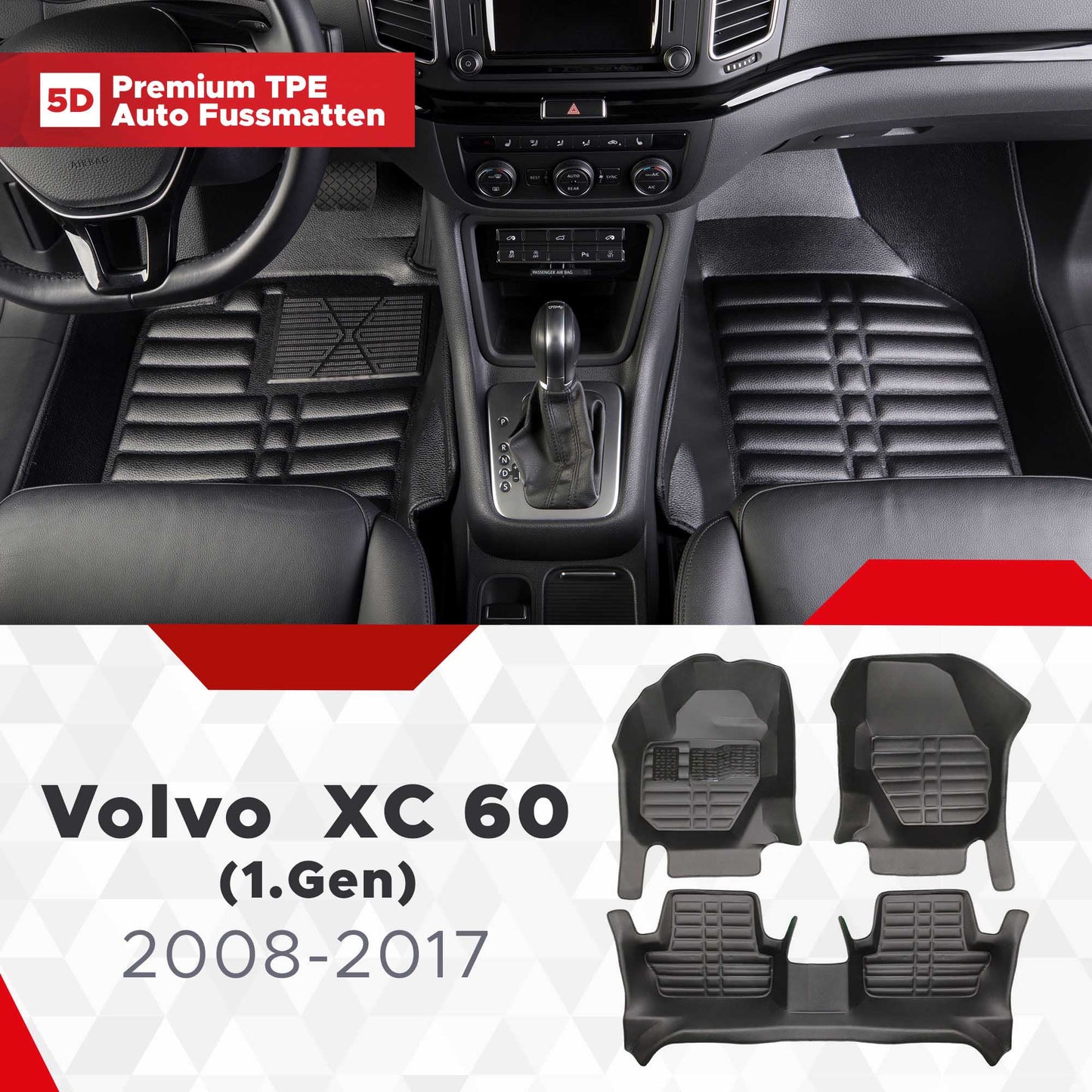 5D Premium Auto Fussmatten TPE Set passend für Volvo XC 60 (1.Gen) Baujahr 2008-2017
