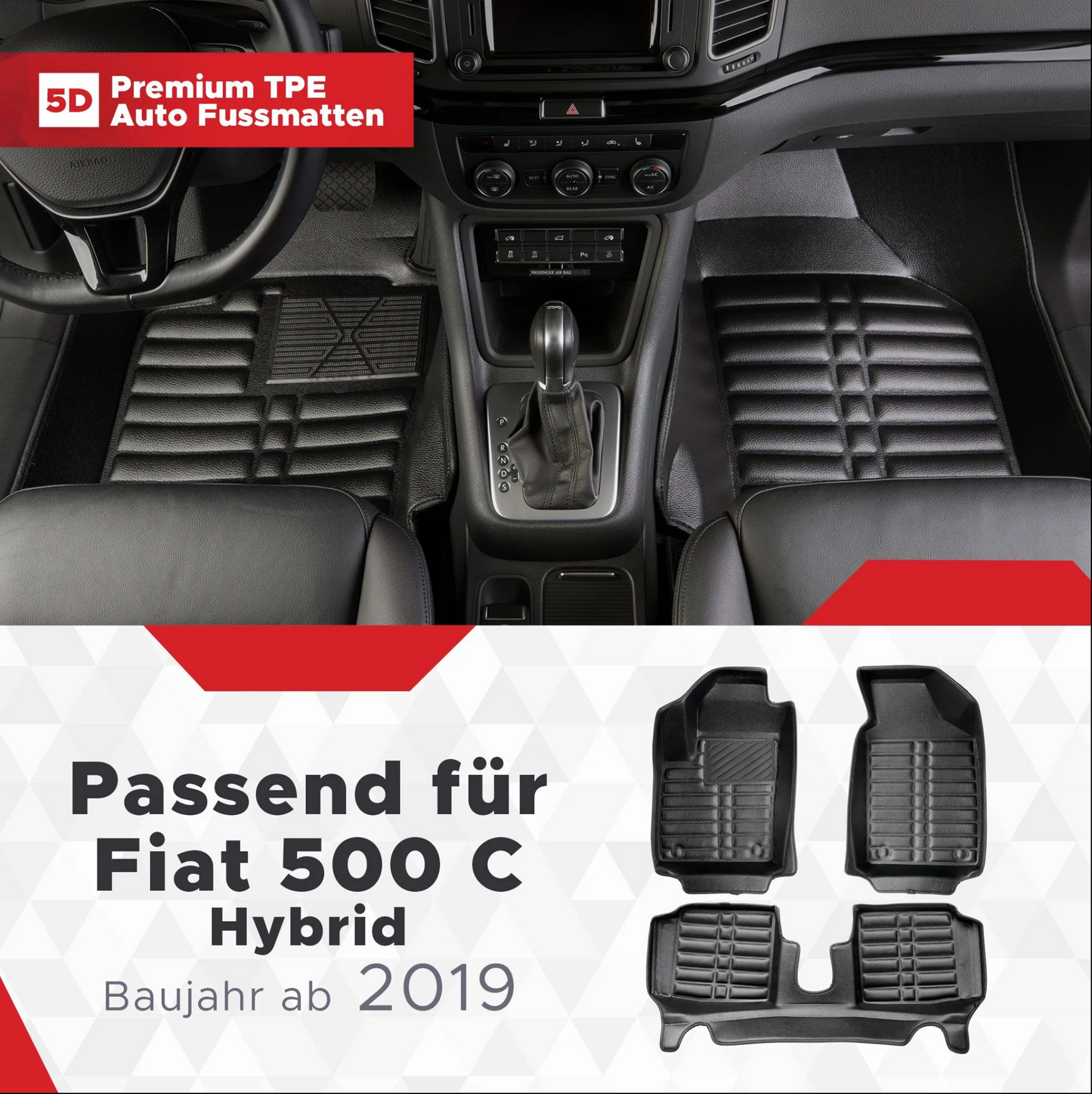 5D Premium Auto Fussmatten TPE Set passend für Fiat 500 Hybrid ab 2020