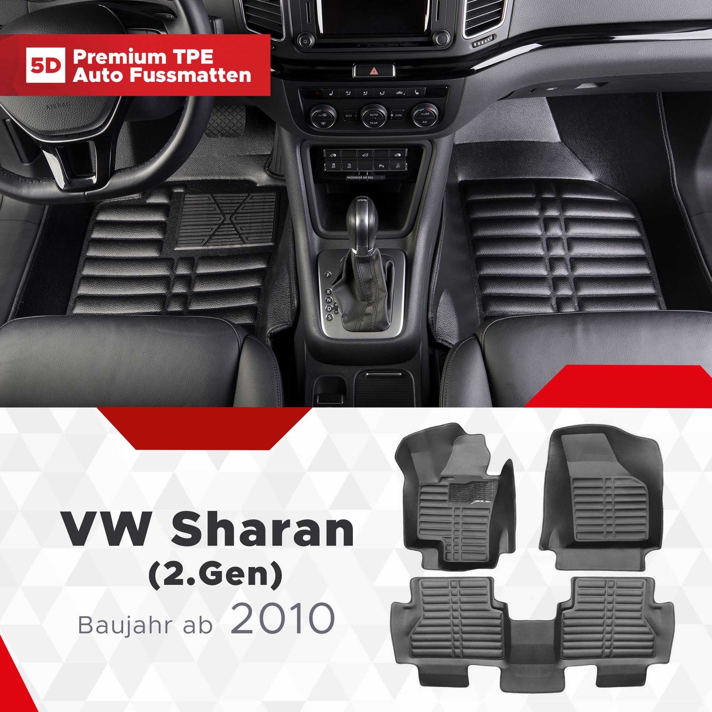 5D Premium Auto Fussmatten TPE Set passend für VW Sharan (2.Gen) für 5 und 7 Sitze Baujahr ab 2010