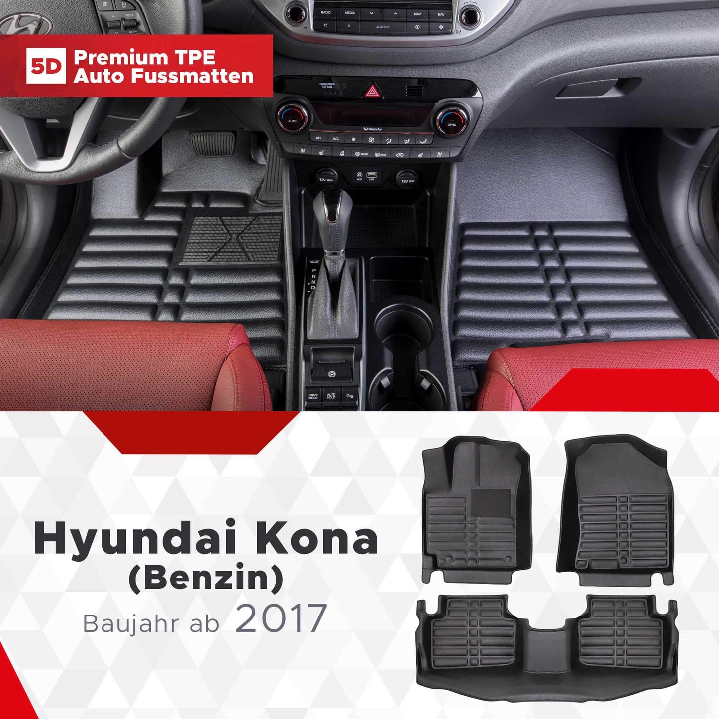 5D Fussmatten Passend für Hyundai Kona Benzin Baujahr ab 2017 Qualität